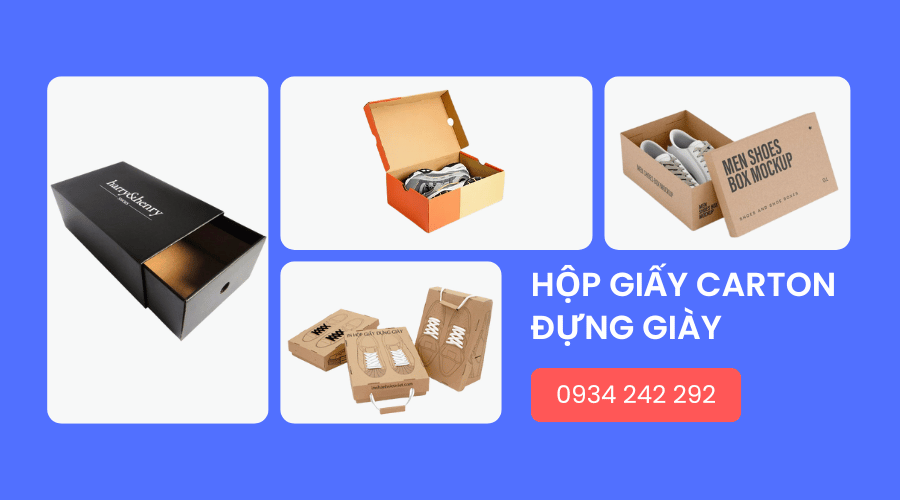 Hộp carton đựng giày là giải pháp bao bì tối ưu, được thiết kế chuyên biệt để bảo vệ sản phẩm và nâng cao giá trị thương hiệu trong ngành công nghiệp giày dép. Với cấu tạo chắc chắn, chất liệu bền bỉ và thiết kế đa dạng, hộp carton không chỉ đảm bảo an toàn cho sản phẩm mà còn tạo ấn tượng mạnh mẽ với khách hàng.