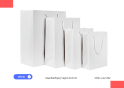 Bao Bì Giấy Sài Gòn – Địa chỉ sản xuất & phân phối túi giấy Kraft trắng trơn có quai giá rẻ, chất lượng